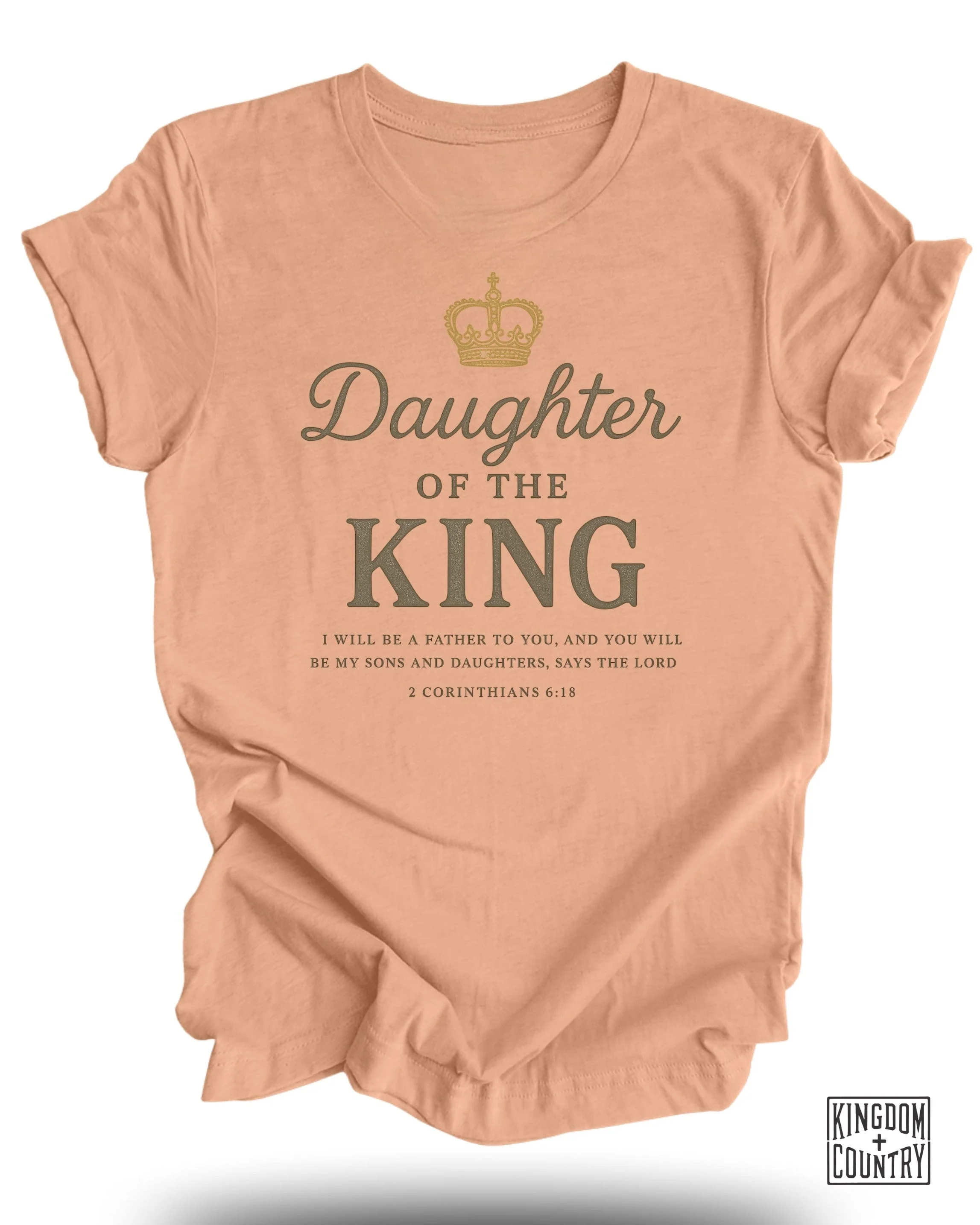 Embrace your identity as a Daughter of the King with this inspiring T Shirt. Featuring a beautiful crown design and a powerful verse from 2 Corinthians 6 18, this shirt is perfect for expressing your faith.