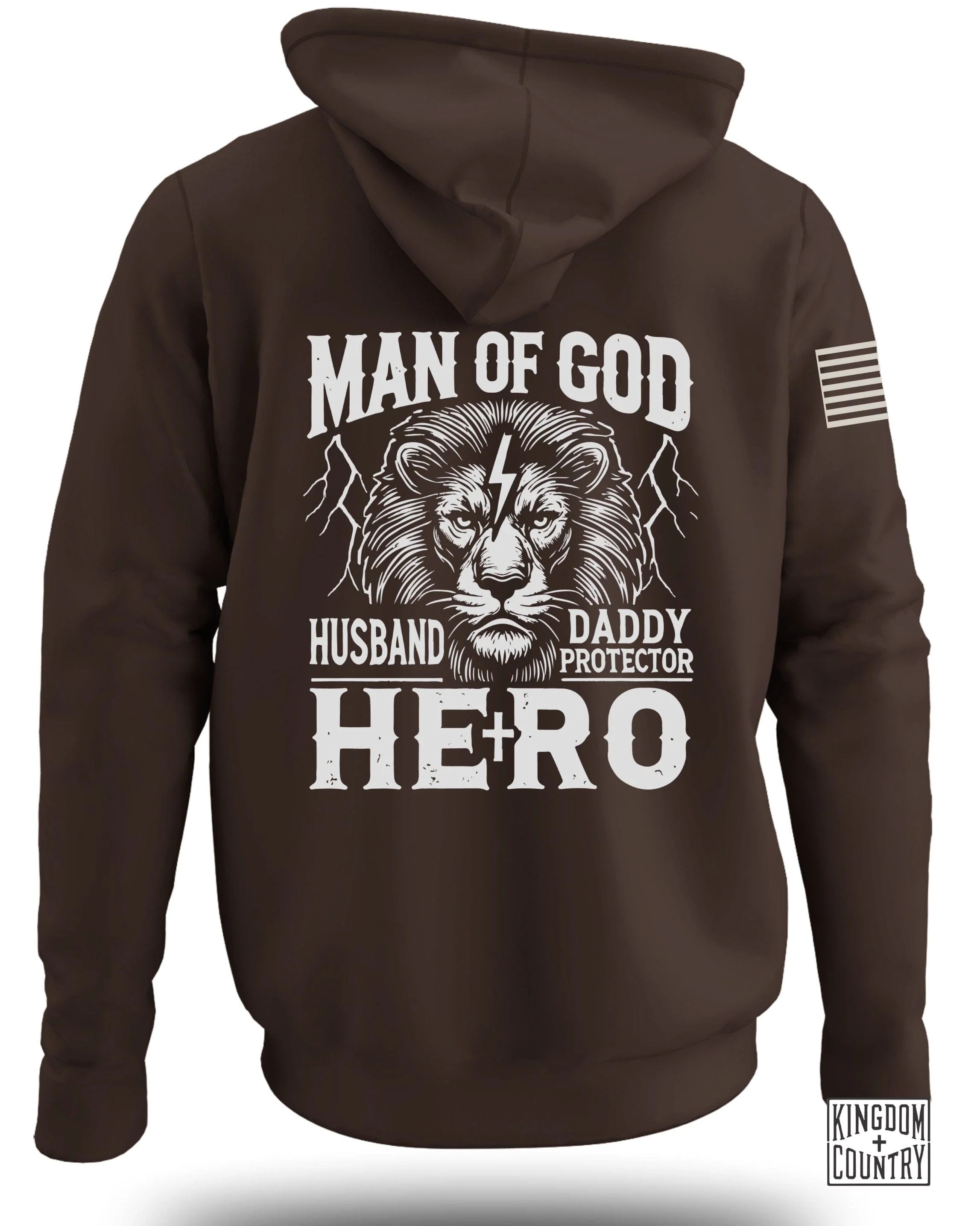 Show your appreciation with this "Man of God" lion design Hoodie. A symbol of strength for husband, daddy, protector, hero, featuring a bold lion graphic.